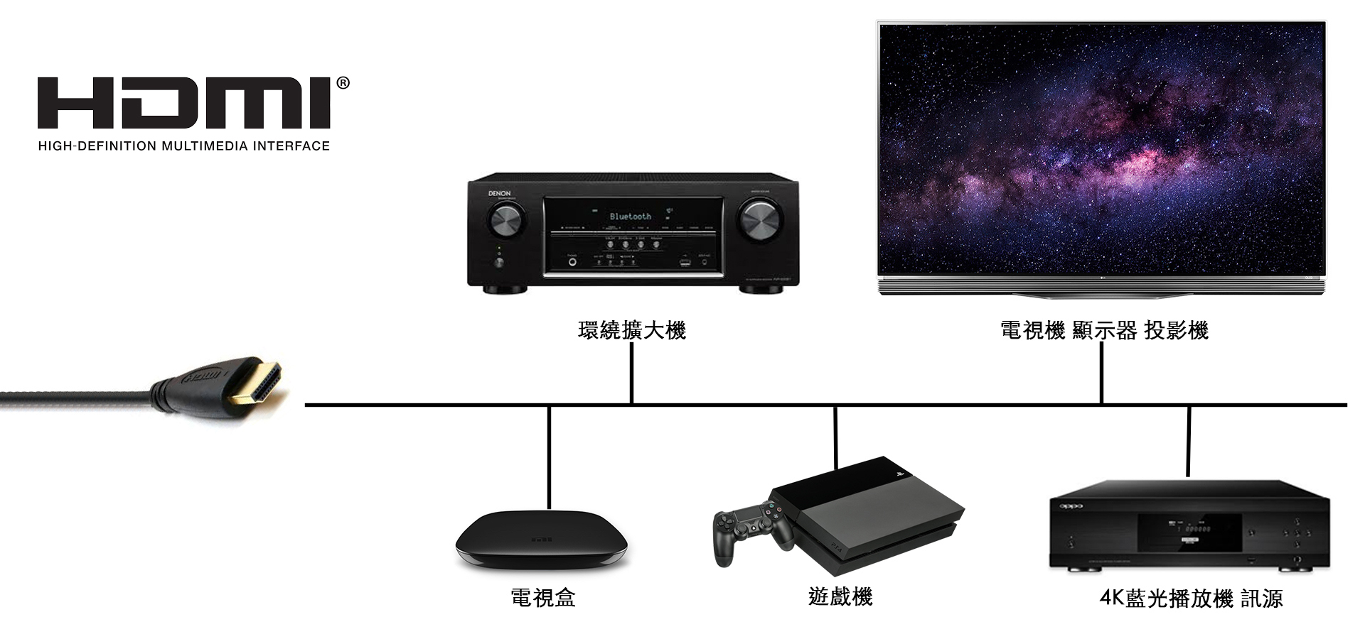 HDMI 全名為 High Definition Multimedia Interface,又稱之為高畫質多媒體介面,是一種全數位化影像和聲音的傳送介面,可以傳送未縮的音訊及視訊訊號。HDMI 可用於機上盒、DVD播放機、個人電腦、電視遊樂器、綜合擴大機、數位音響與電視機等裝置。