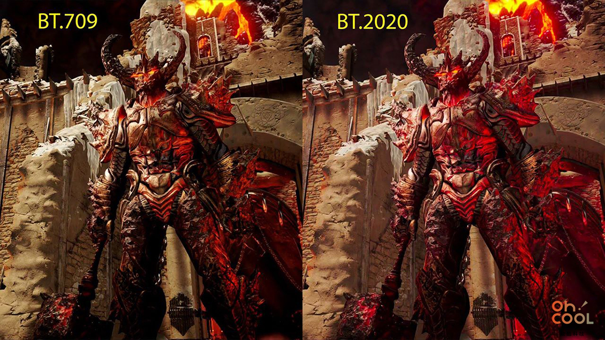 右邊 BT.2020 的廣闊色域,讓色彩更加豐富艷麗、自然活生