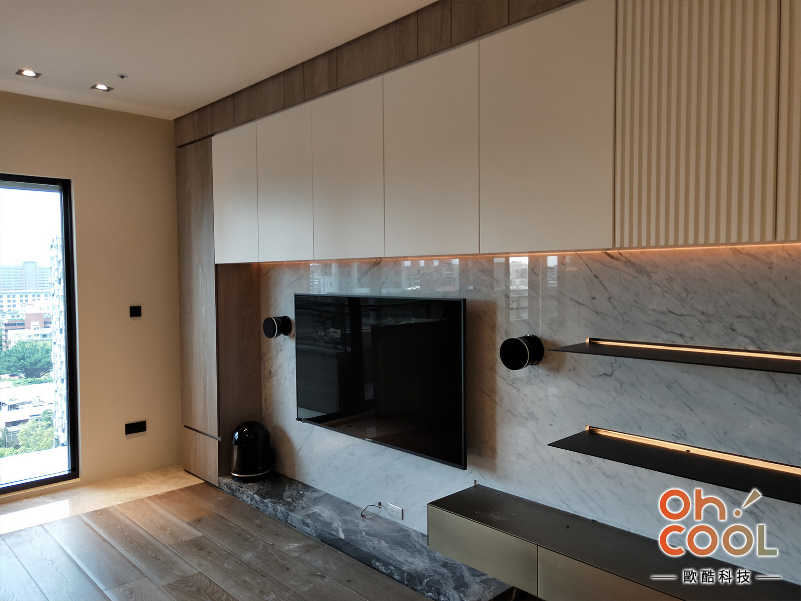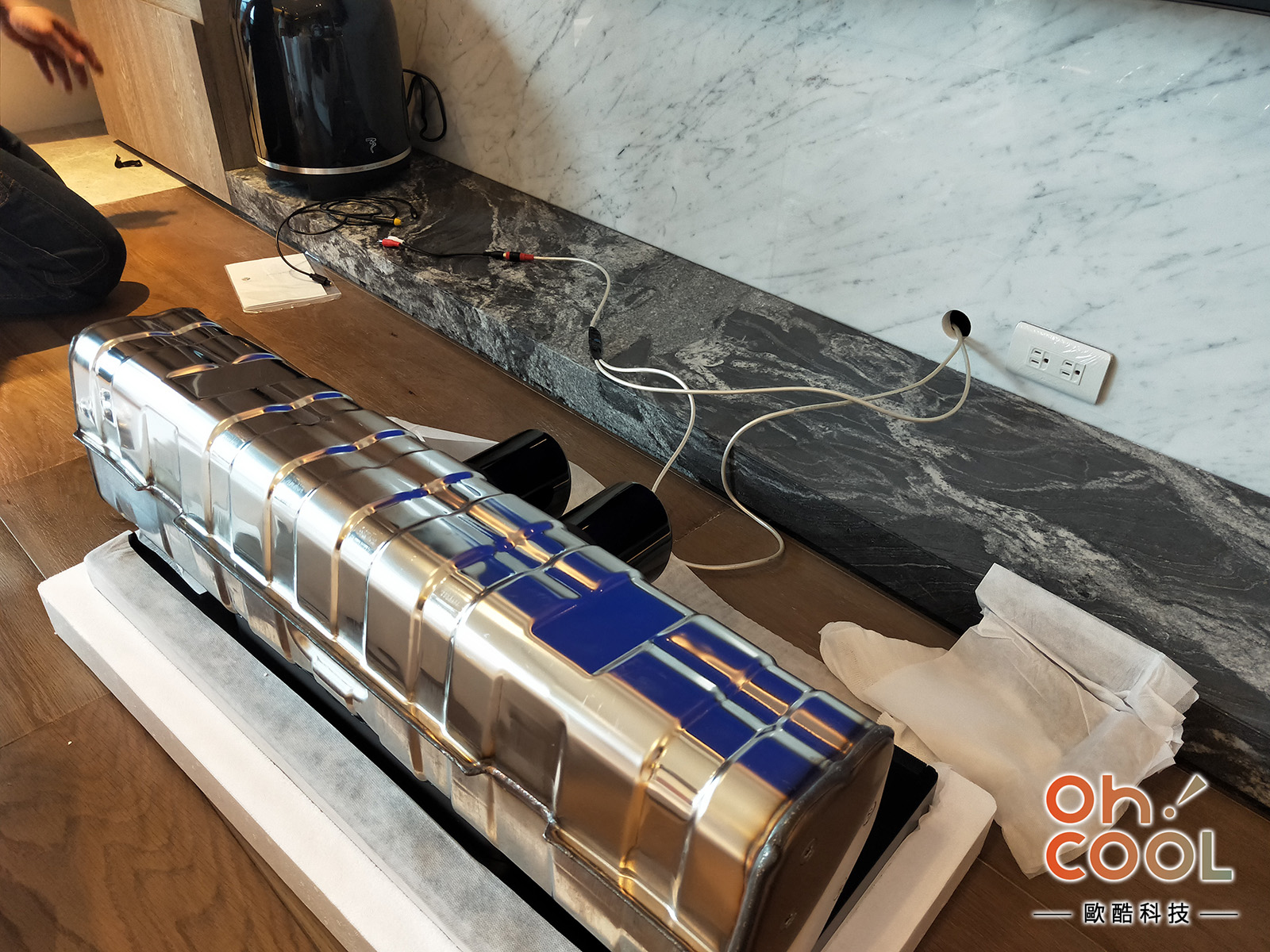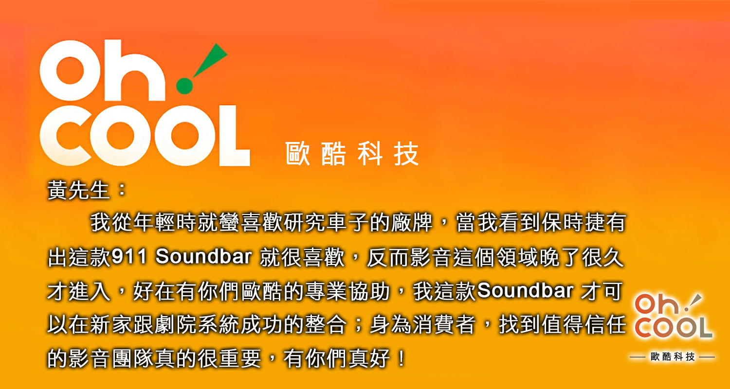 業主黃先生在搬家之前就已經購置好了這款 911 Soundbar,他想在新居規劃一套多聲道劇院系統,並希望能跟這款聲霸進行整合。由於整合與設置作業有一定的難度,先前業主詢問過很多家廠商,但問到的結果,都是兩手一攤說沒辦法做到。歐酷秉持著專業服務精神,與黃先生多次溝通協調,實際也經過無數次不斷的耐心測試,找到與這款聲霸相批配的硬體擴充設備並成功的整合,最終達成了業主的要求。俗話說慢工出細活,我們相信在最後的驗收階段時,業主臉上一定會出現滿意的笑容,歐酷就是有這樣的自信和把握。