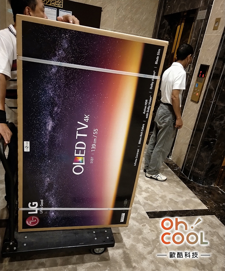今天我們把電視順利送到業主家,也迅速的安裝並設定完成之後,馬上來瞧瞧 LG 這台 OLED B7T 55吋 4K 電視… 那纖薄的機身、還有那高解析度的色澤呈現出來的畫面,果然擁有絕佳的視覺感受,現在就耐心等待他的 203 歐酷越獄版到來嘍!再次感謝傅先生對我們好康團購的支持。
