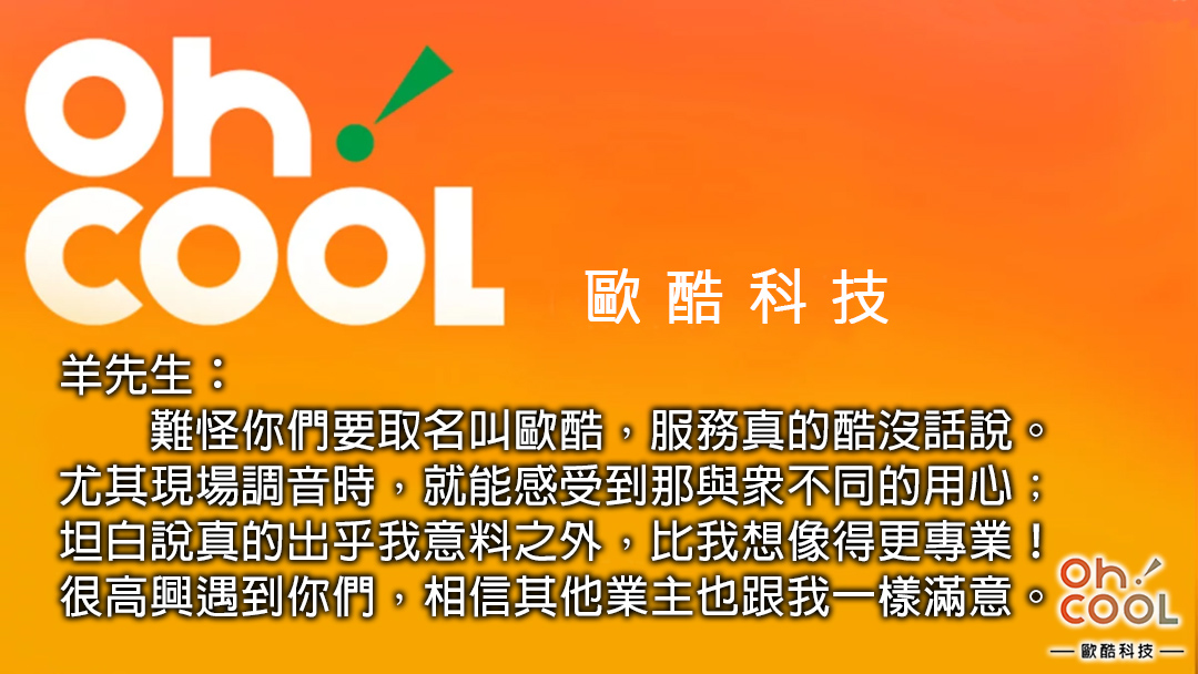 透過朋友的介紹,羊先生得知歐酷有提供影音專業規劃的服務,緣份也讓彼此有配合的機會。記得第一次接到羊先生打來的電話時,本來只是普通的諮詢,卻因為一聊到影音相關話題,結果彼此話匣子就開了起來,一聊下去將近二十分鐘才捨得掛電話,我們也覺得羊先生很有意思,他也很期待與歐酷的見面。