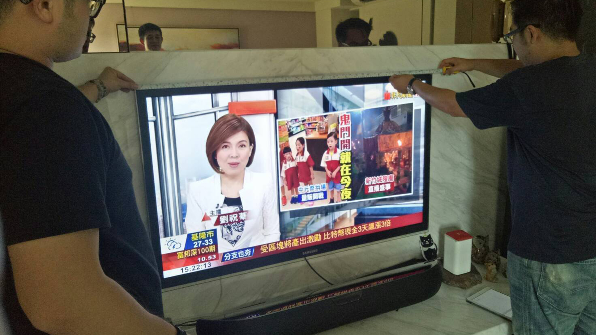 幫徐先生丈量目前的電視尺寸及掛鉤