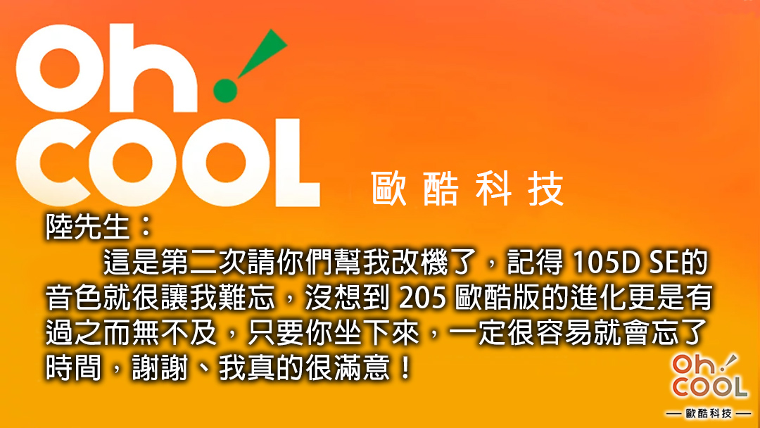 雖然業主家客廳的這兩聲道系統要價不菲,但我們的 205 歐酷版在這麼多發燒器材的環繞之下,表現依然毫不遜色,這正是得到業主青睞的關鍵,不但是肯定 OPPO 機器一貫的品質,更是再度肯定歐酷在改機的專業以及用心,我們也絕對有讓業主滿意的信心,讓 OPPO 205 歐酷版擁有可以媲美高階訊源的 CP 值。