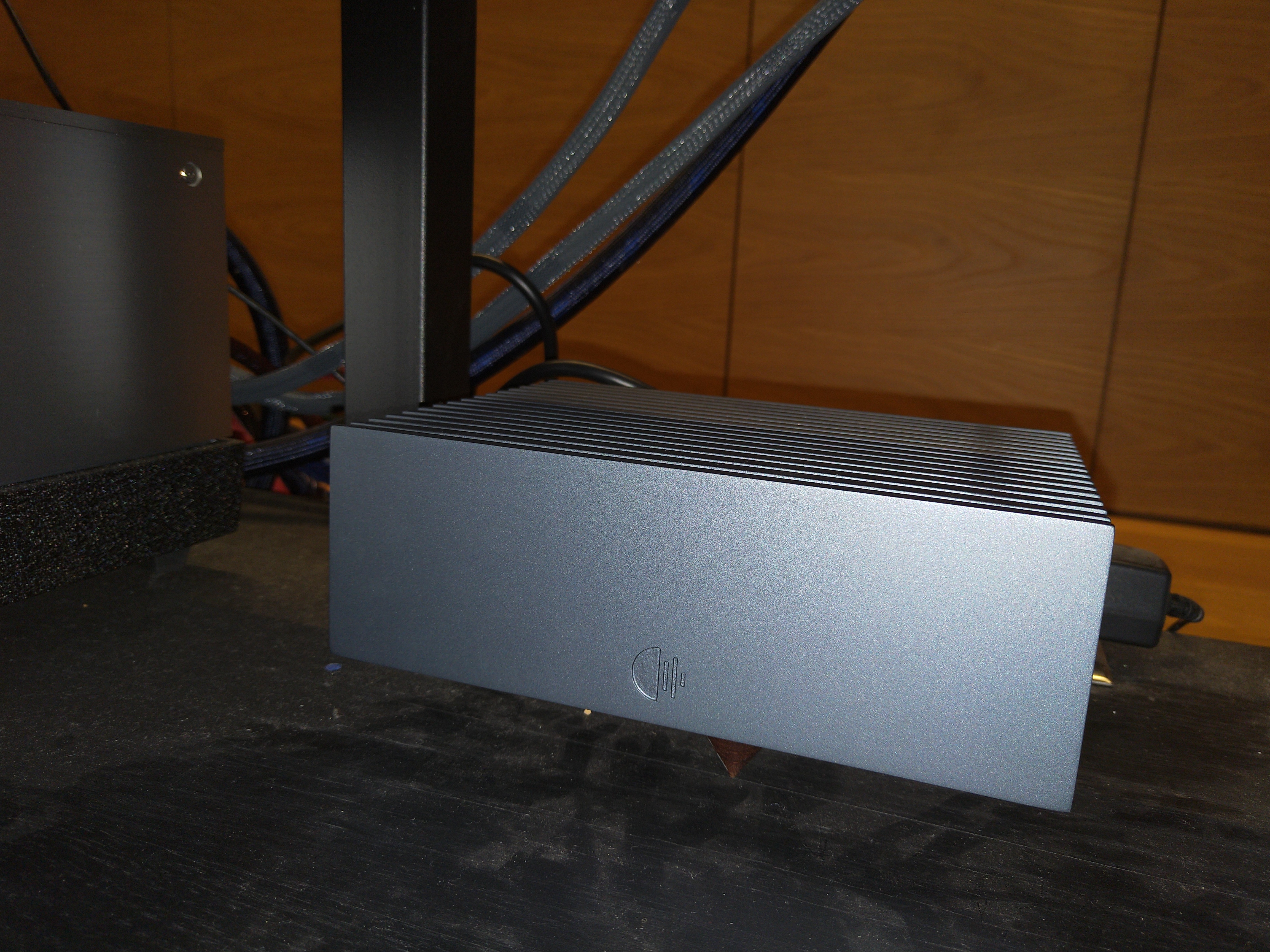 對於真正的發燒友來說,只有機器高檔還不夠,業主為主聲道選用的線材是義大利的 A.R.T 高檔喇叭線;作為一個音樂伺服器,業主用的不是一般的 NAS,而是 Roon 自家開發的產品 Nucleus+,這可是價位更高檔的產品,連接 Nucleus+ 的是使用純銀導體、獨家DBS(電池偏壓技術)的 Audioquest Diamond USB線,這發燒指數根本就已經破錶了!