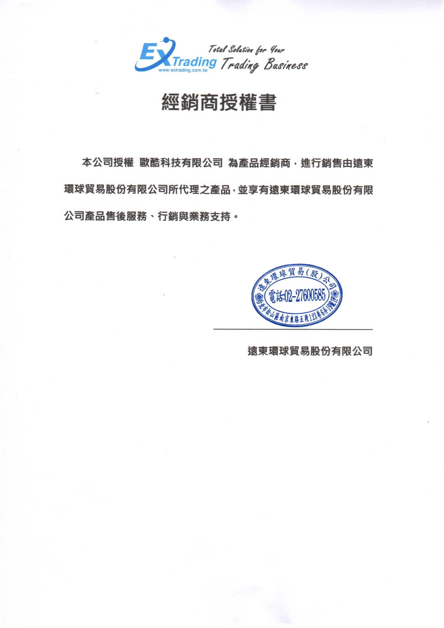 遠東環球貿易股份有限公司 授權經銷商