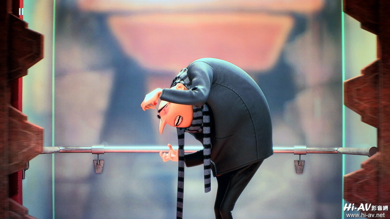 同樣是 DTS 2018 示範片裡的《神偷奶爸2》示範片段,當大門打開時,兩扇門扉向左右拉開的移動音效,是前方三聲道喇叭連貫性的考驗,既然此系統前方聲道喇叭是完全相同的型號,這段音效自然輕鬆過關。