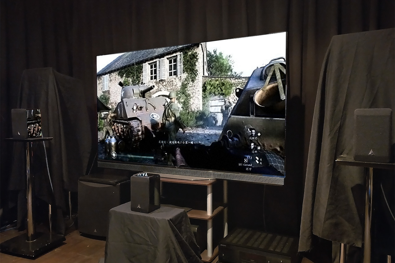 最後就是要來講一下Sony PS4《Call of Duty WWII》遊戲的表現,這是一部以第二次世界大戰為背景、環境音效定位會隨著主角「視角」轉動的遊戲(例如主角視線向左方轉,原本在背後的音效就會移動到視聽室左側,而且是連續的移動),這套Atlantic Technology LCR2 5.1系統同樣展現了各聲道「連成一氣」的音效移動連貫性,當然也帶來更身歷其境的遊戲感受。