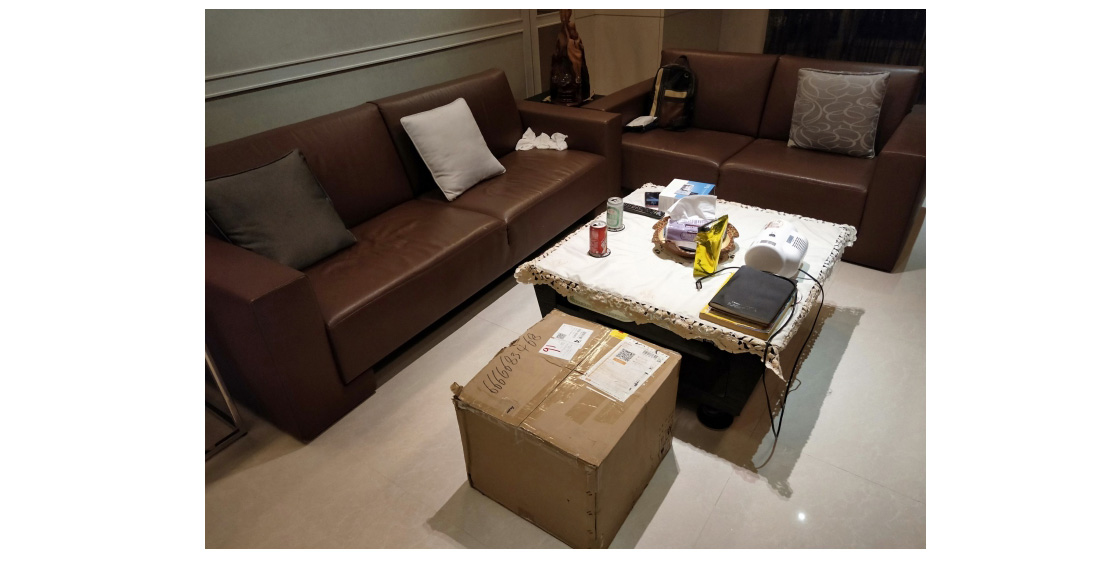 拆開箱子,把機器放在茶几上,裡面的配件有五樣