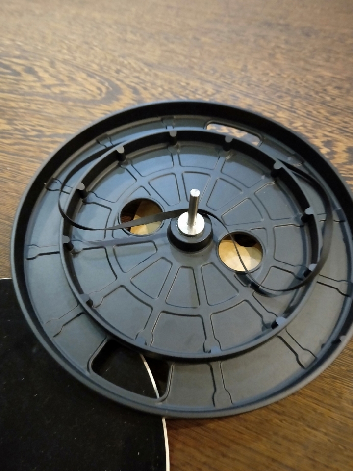 接著把唱盤和皮帶裝上機器,這邊真的不太好弄,唱盤裝下去的時候要一併把皮帶勾到馬達上去,不過勾上去後旋轉唱盤就可以感覺到有固定住,接著再把平衡錘轉入唱臂就算完成了!