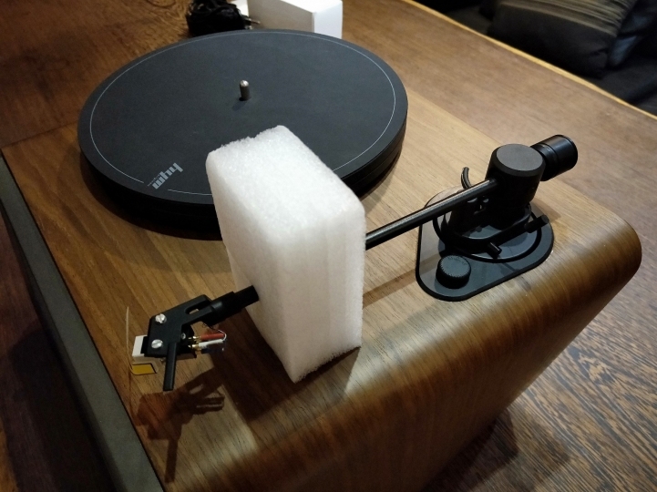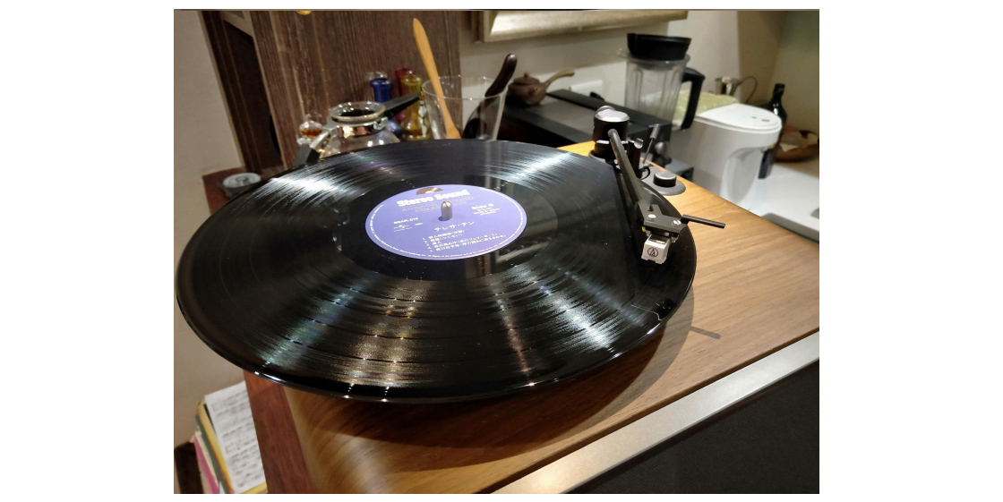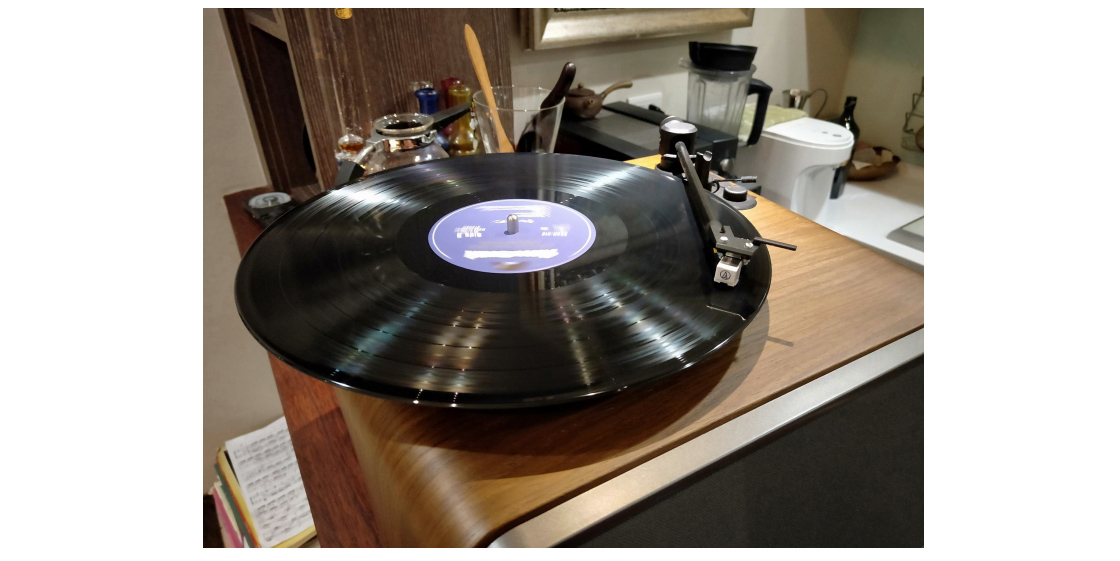 接上電源後,立馬拿出黑膠唱片來放,黑膠唱片放上,往左轉33轉,然後唱臂移到第一首歌,按下桿子,黑膠有點波波波的聲音就出來了!簡單,不難!