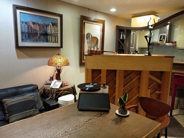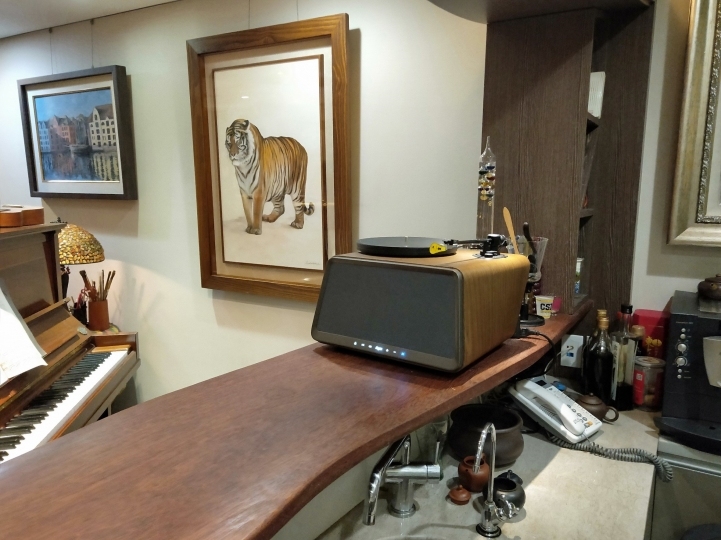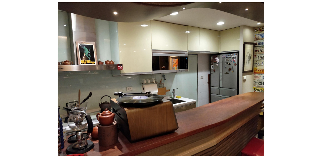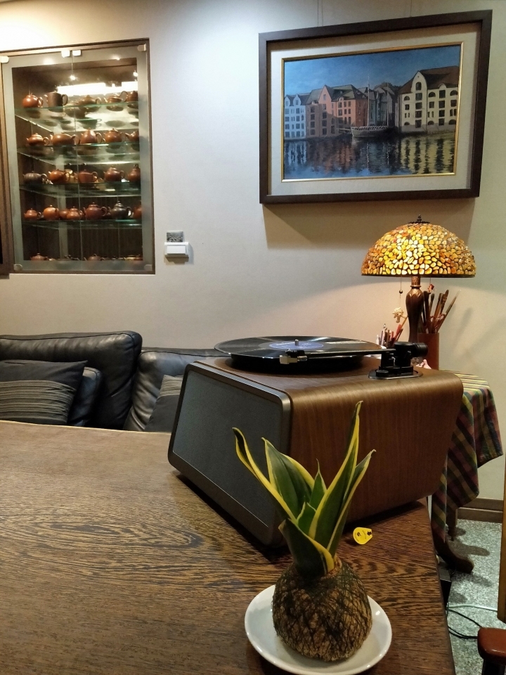 後來被我爸說放在茶几上有點突兀,要我放到吧台去… 所以在我還沒來得及把機器上電,拿出黑膠片時就被我爸把Seed移到吧台上去,其實放在吧台上氣質又不同了!