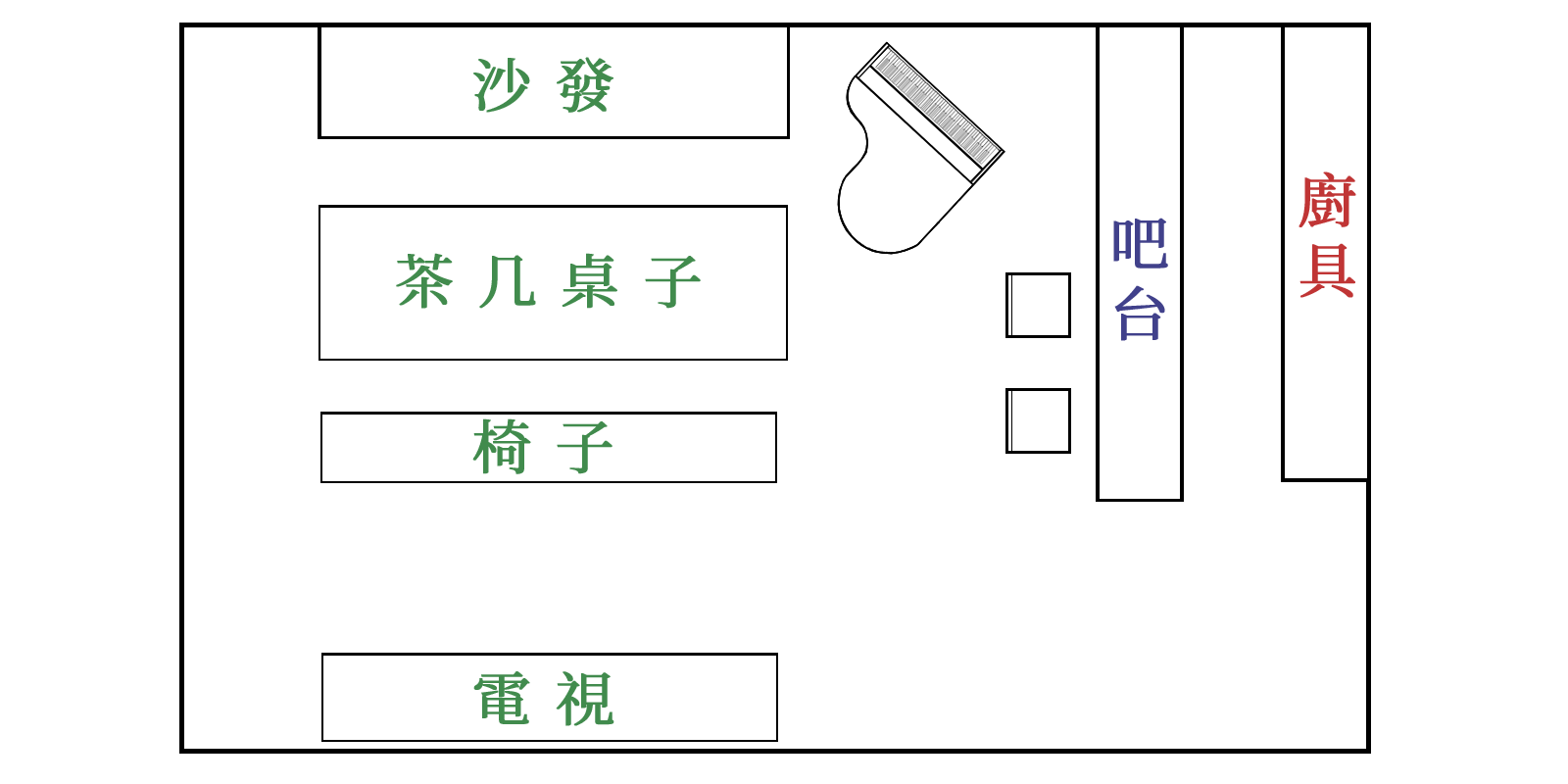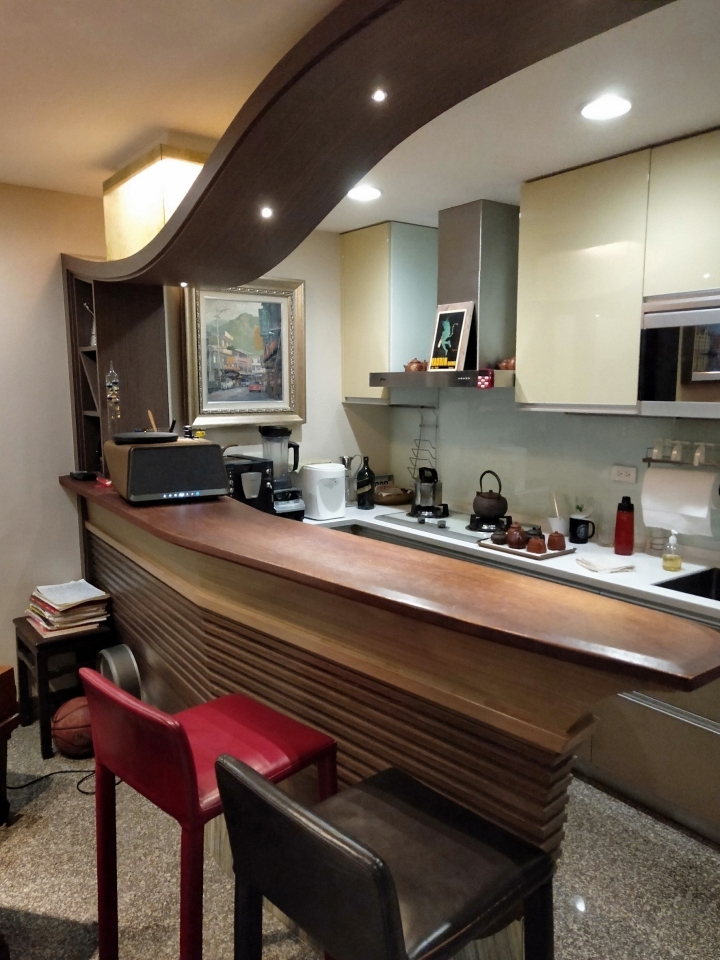 『分享輕音響擺設前先說,這裡面滿多圖的,小弟文筆不好內容不多』。家中的裝潢通常都是爸媽的傑作,如果想要增設一些設備都會需要經過大人的同意。我們家是走歐式古典木作質感的風格,在客廳有一個吧檯,先附上格局圖。