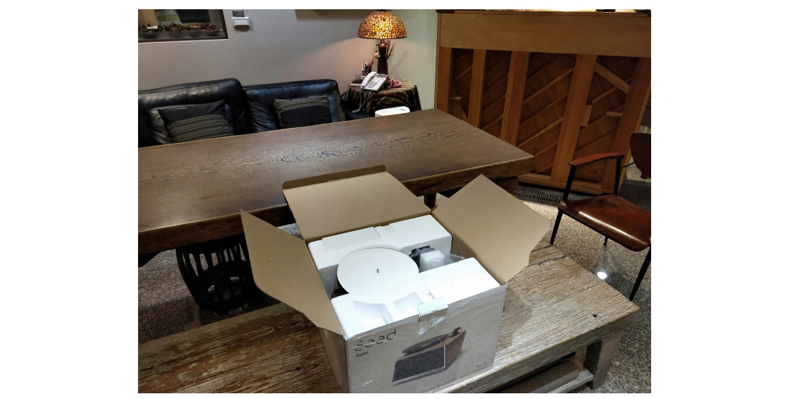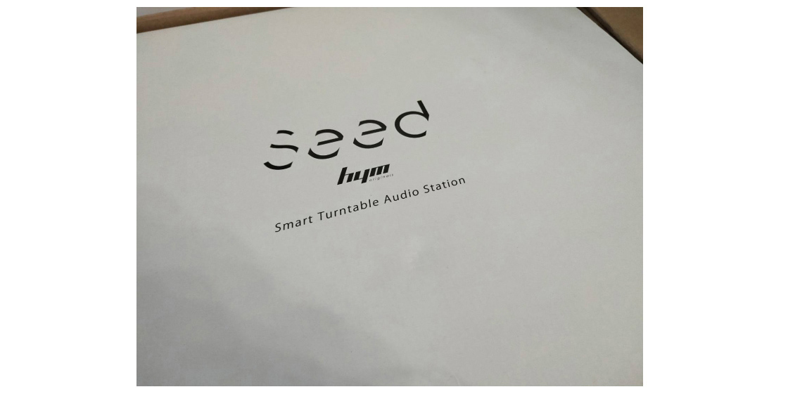 上網訂完蠻迅速就到貨了,接著就是開箱先。首先開箱就看到音響的型號 HYM Seed上面寫的是Samrt Turntable Audio Station,網路上是叫做”黑膠智慧音響“,可能是因為可以黑膠又可以藍牙所以很智慧吧!