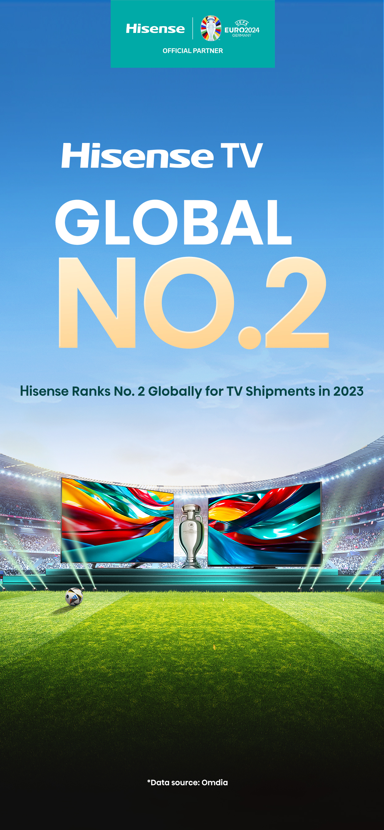 最新排名公佈: 2023年 Hisense電視出貨量蟬聯全球第二