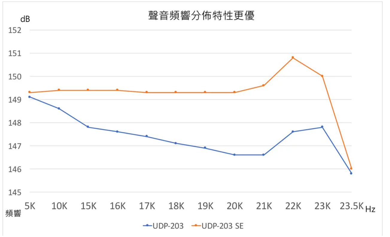 由此圖可以確認藉由改變某些元件後,能夠讓高頻上段的延伸性變得更好,讓聽眾在視聽時,能夠將細節更輕鬆的刻畫出來。
