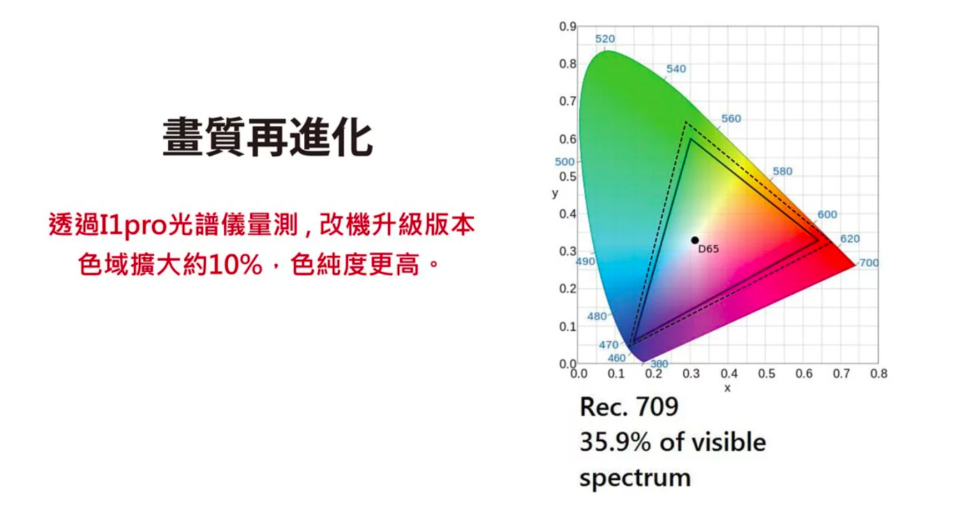 本次改機重點主要在於音質提升,最後想不到連影像色域部分也能有所提升