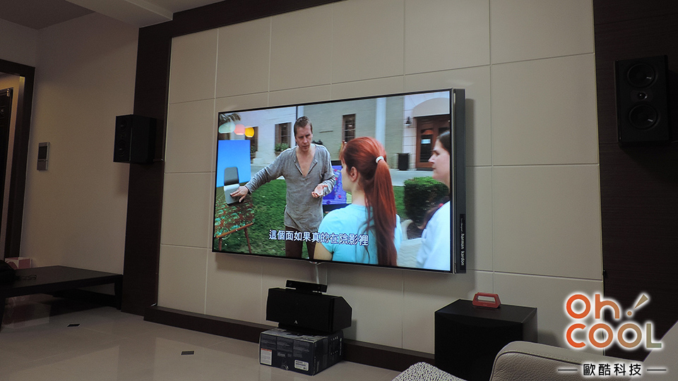 重要的驗收時刻來臨,業主一連播放了好幾部影片,甚至把 Xbox 都裝起來現場玩了!結果…不論是看電影或是進行遊戲,整體的表現都很棒。值得一提的是,喇叭本來的設計是落地式,一方面擔心小孩會不小心碰撞到,才請歐酷幫他改成壁掛式,但另一方面,他又蠻擔心改成壁掛式之後,聲音會變得不理想… 直到現在組裝完成之後,聽見了成果,他總算放下了心中的大石,也露出滿意的微笑。