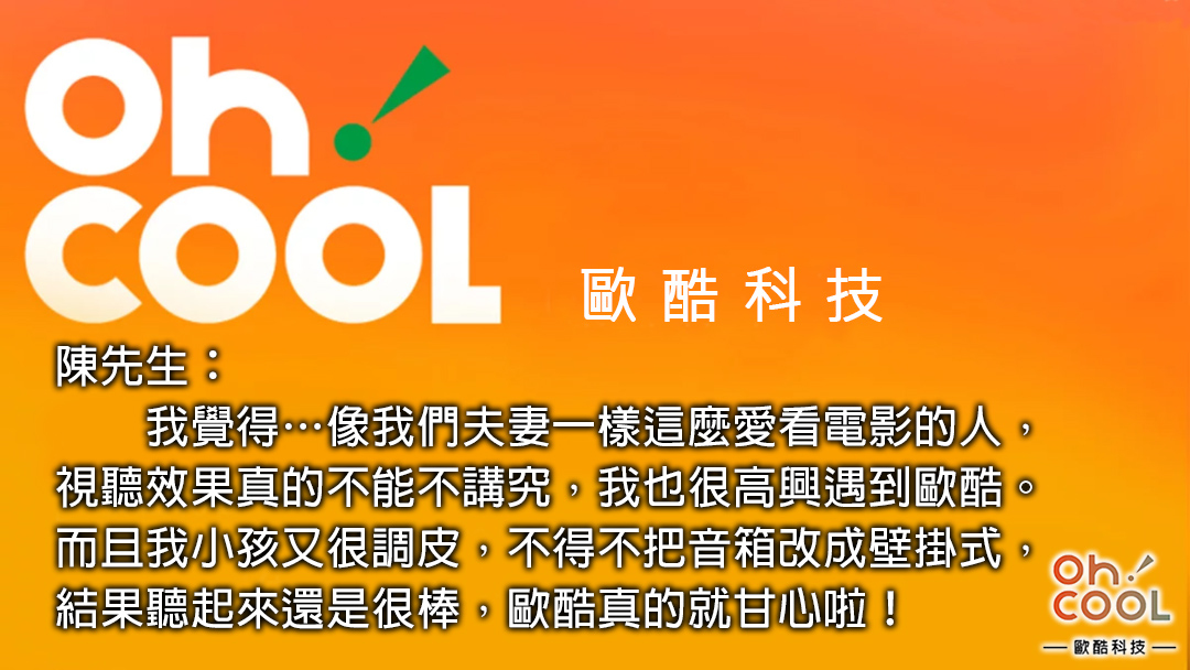 就在某個假日,陳先生又開始在網路上搜尋,他偶然透過關鍵字發現到了我們歐酷科技,原本抱著姑且一試的心態打電話來預約體驗的時間。我們當天安排讓陳先生試聽 OPPO 203 4K 藍光播放機,再加上 Atlantic 4400 系列劇院組,沒想到現場試聽結束之後,陳先生突然問了我們很多問題,當天晚上他回到家之後,又主動跟我們聯絡,決定選擇我們為他進行規劃。