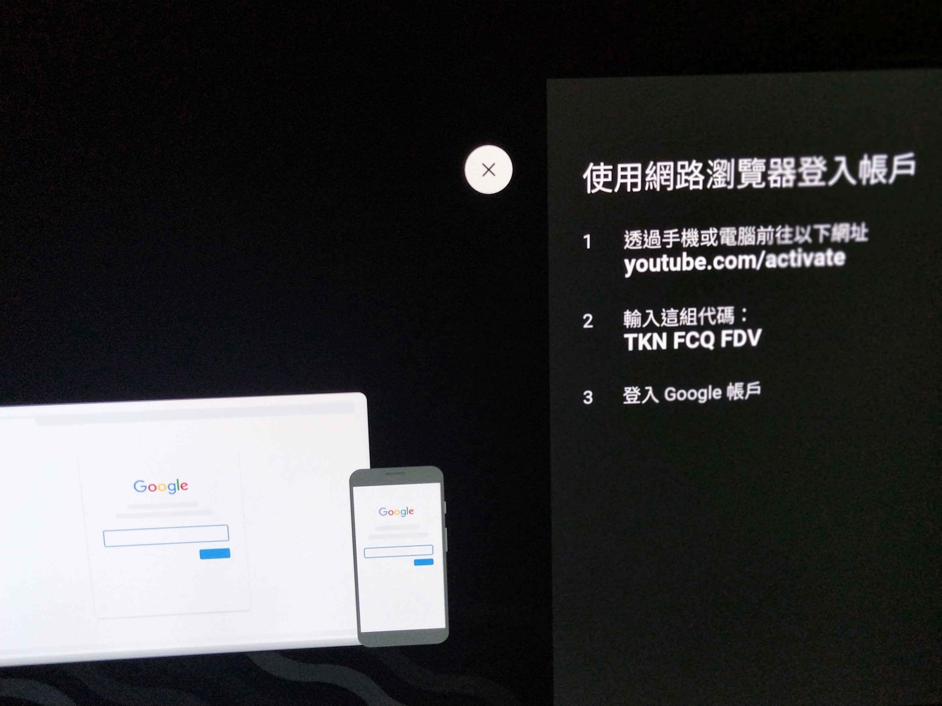 2.搭配已經裝有YouTube的手機,透過手機上Chrome瀏覽器輸入「youtube.com/activate」網址,並輸入英文代碼即可登入自己的youtube帳號,登入後你所有播放清單都可同步了,操作更輕鬆。