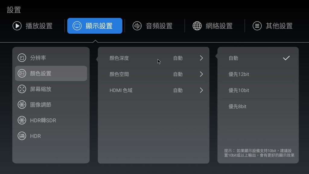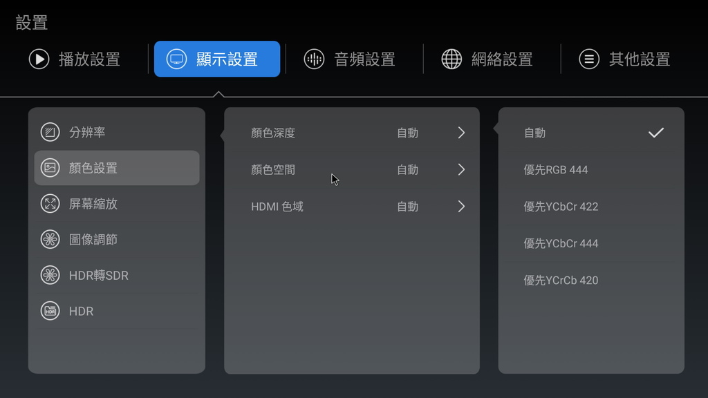 ▼「顯示設置」中的選項豐富,不論是顏色深度、空間、HDMI 色域等等皆具備