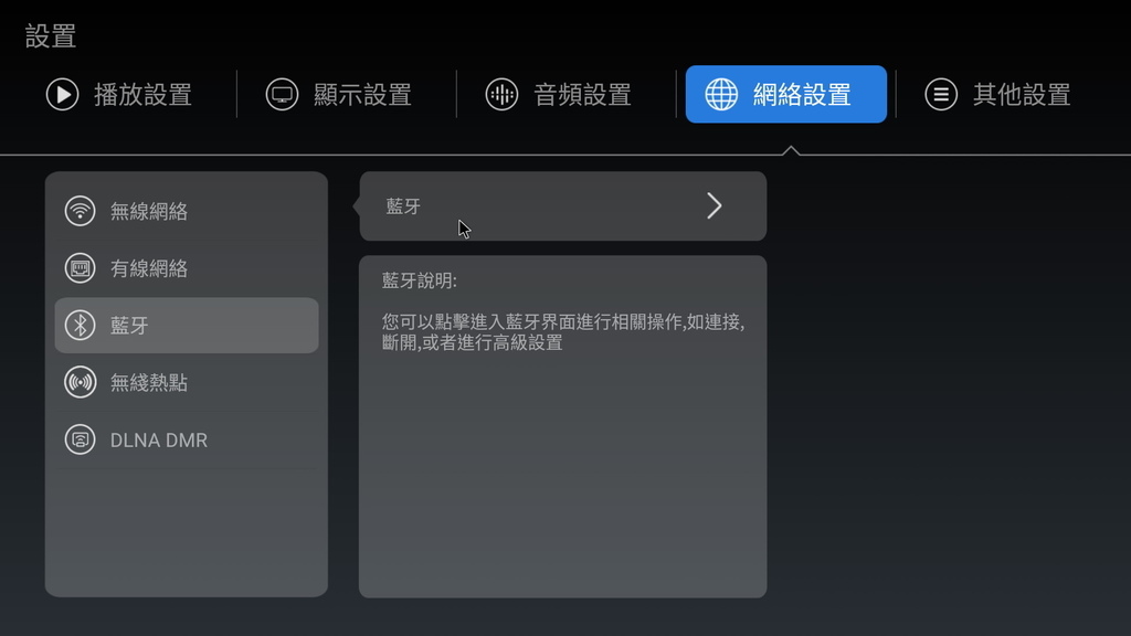 ▼「網絡設置」這邊比較特別的是還有藍牙的功能,所以如果要配對藍牙滑鼠、鍵盤、甚至遊戲手把的話應該都沒有問題