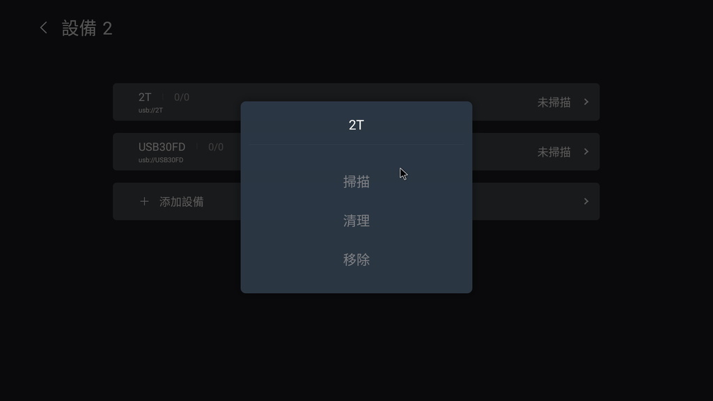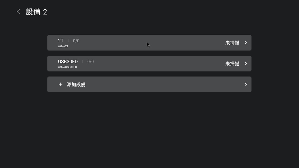 ▼這時候進入設備管理,我放了一顆 2T 硬碟在抽取槽,USB 上則插了一個隨身碟