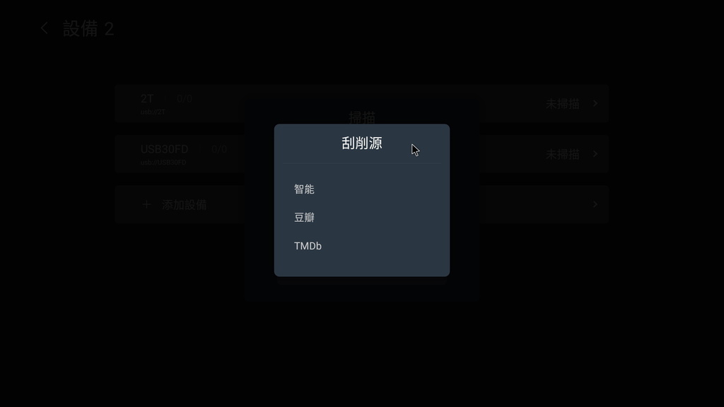 ▼所以說所謂的「刮削源」,應該是指你要蒐集掃描資料的來源,在這裡可以是豆瓣或是 TMDb (The Movie Data Base) 或是其他種種來源