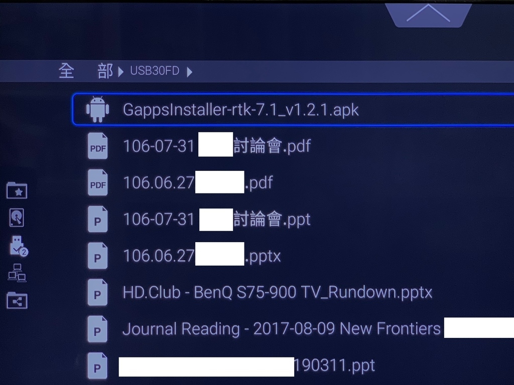 上網找到這個 GappInstaller 的 apk 檔案,放在隨身碟之後經由「媒體中心」檢視檔案