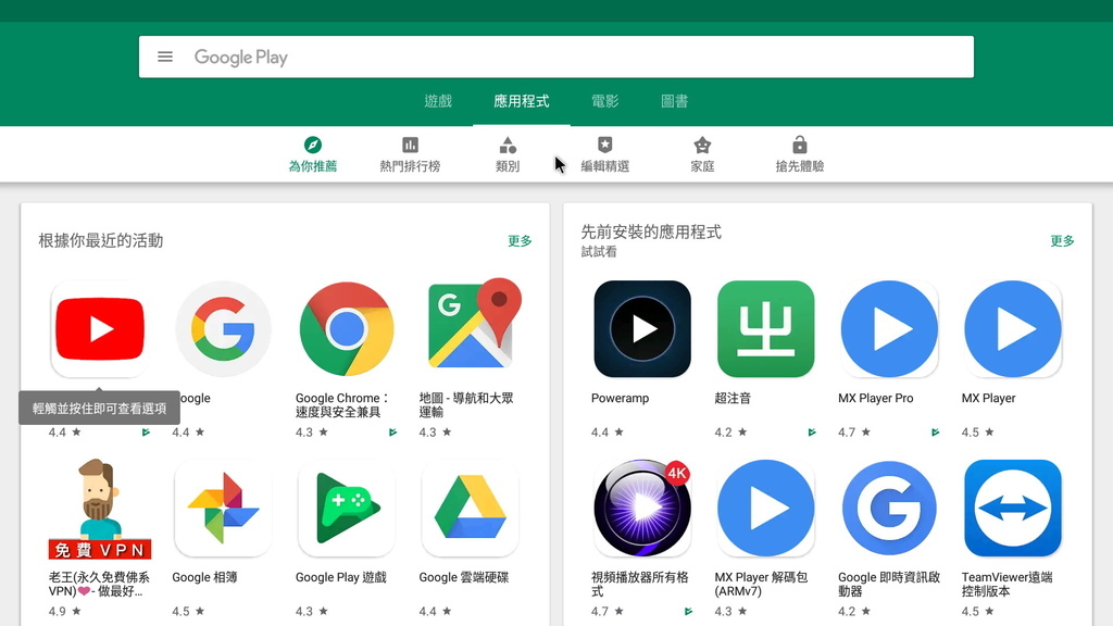 ▼這時候就已經豁然開朗了,等於是當成 Android 的平板在使用的感覺,可以登入你的 Google 帳號,安裝一大堆有的沒的 Apps,