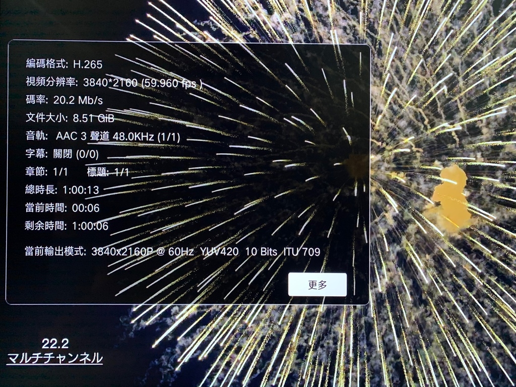 ▼近來日本 4K 衛星經由藍光接收器所燒錄出來的光碟片,無意間被「猴子」給解開了,趕緊來測試一下能否撥放,原始節目是 NHK BS4K 22.2 聲道的檔案,