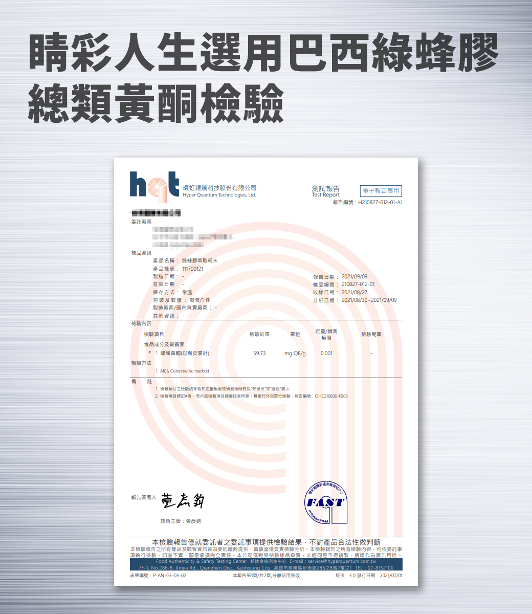 巴西綠峰膠(總類黃酮高達59mg/g)