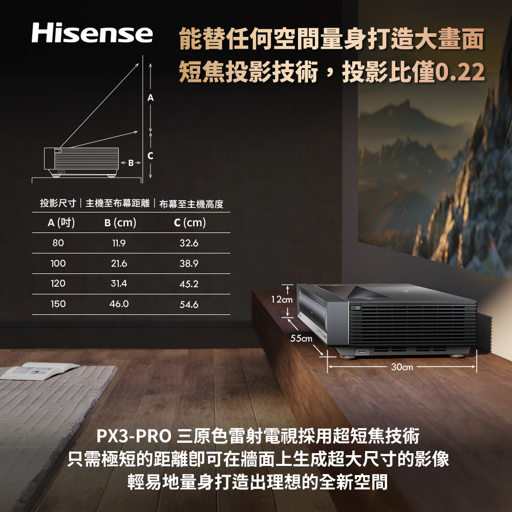 ✅ Hisense PX3-PRO三原色超短焦UST雷射電視(80~150吋)
