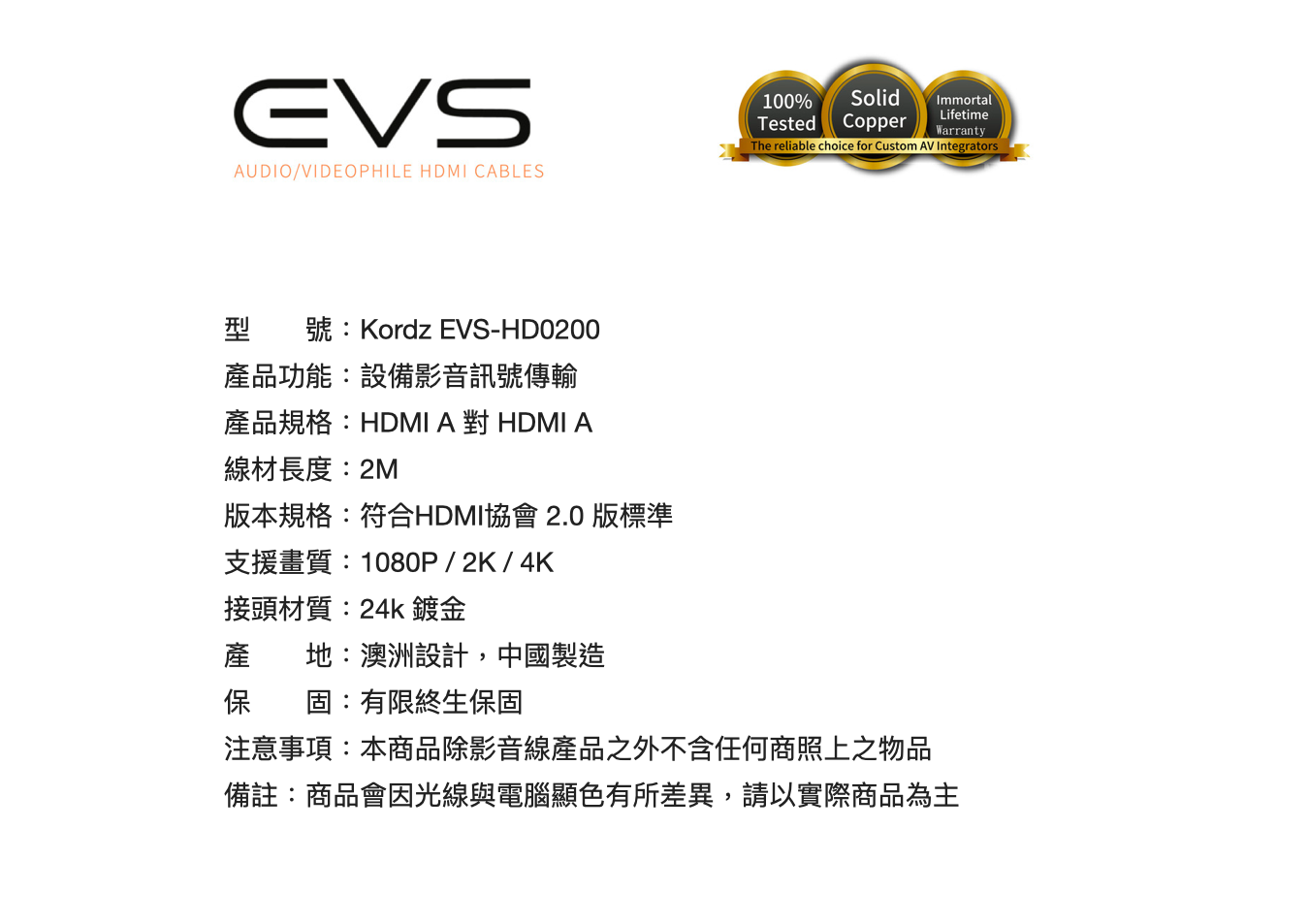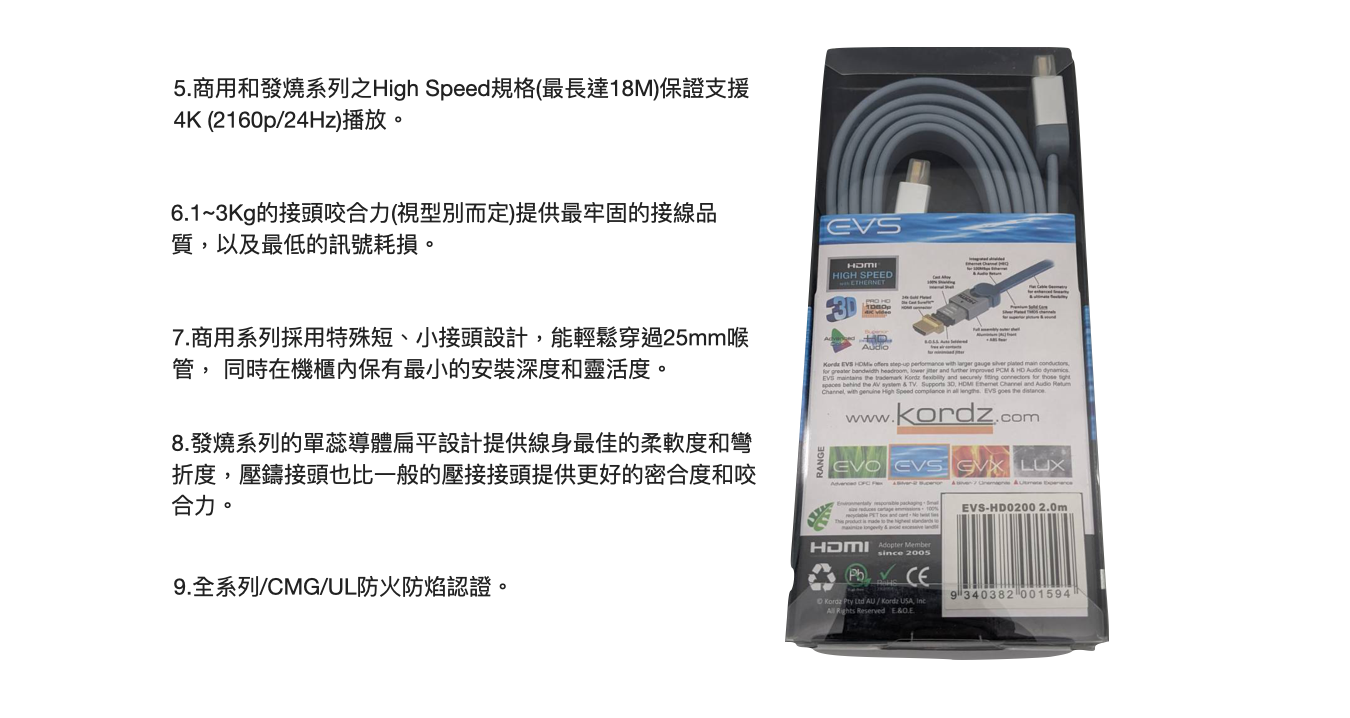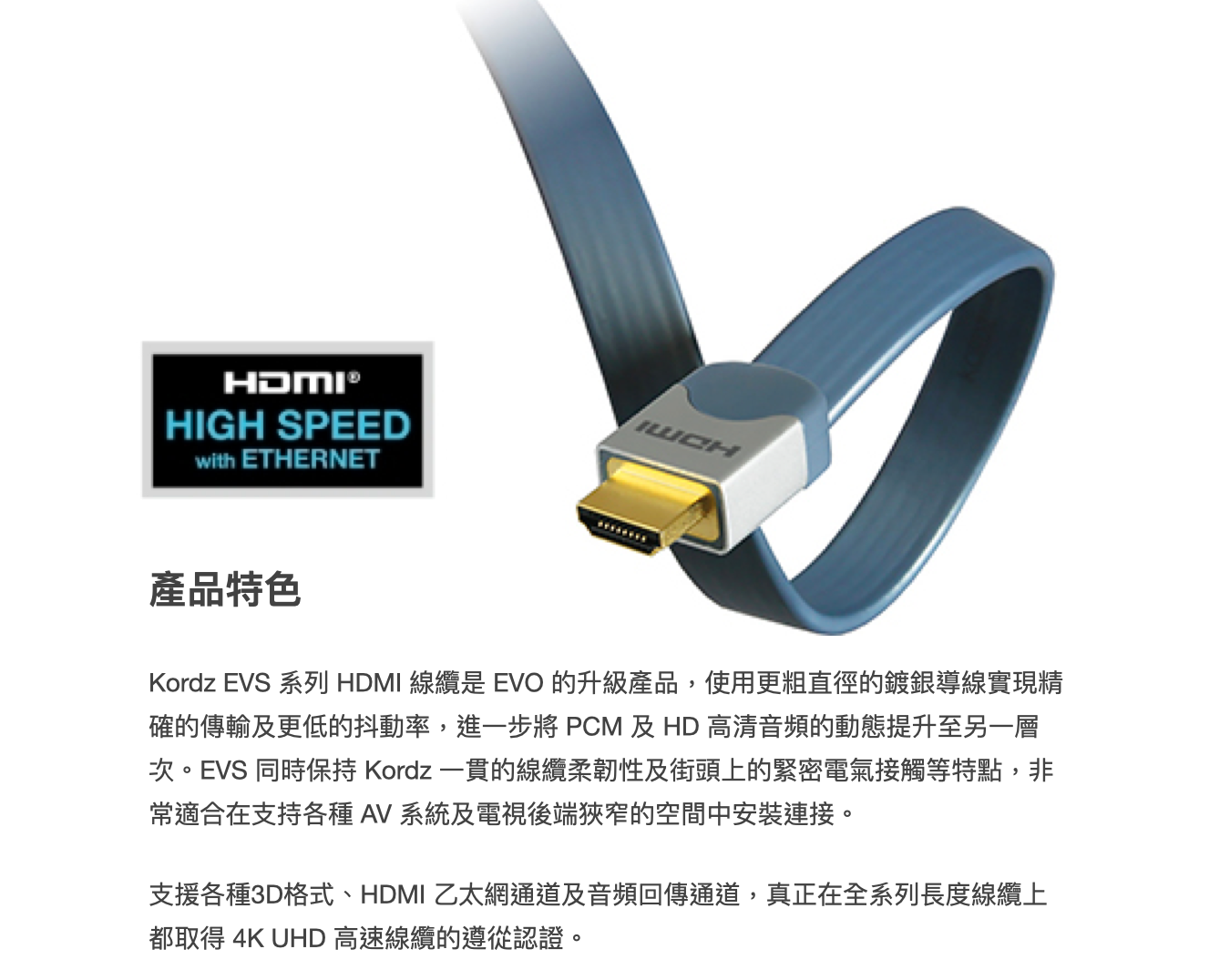 Kordz EVS HDMI線 2米【下殺17折】 (可過4K UHD)